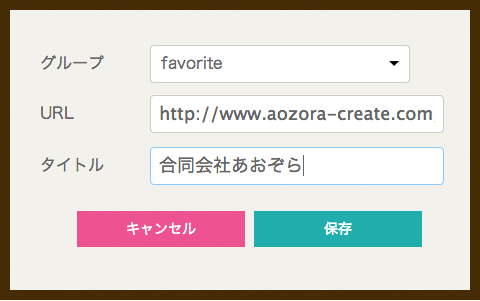 ・URL、タイトルが予め設定された状態でブックマークの追加ダイアログボックスを表示することができます。