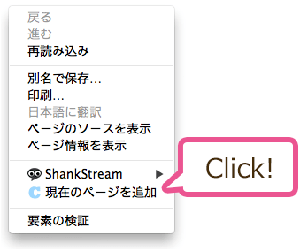・表示されたショートカットメニューの「現在のページを追加」をクリックします。
